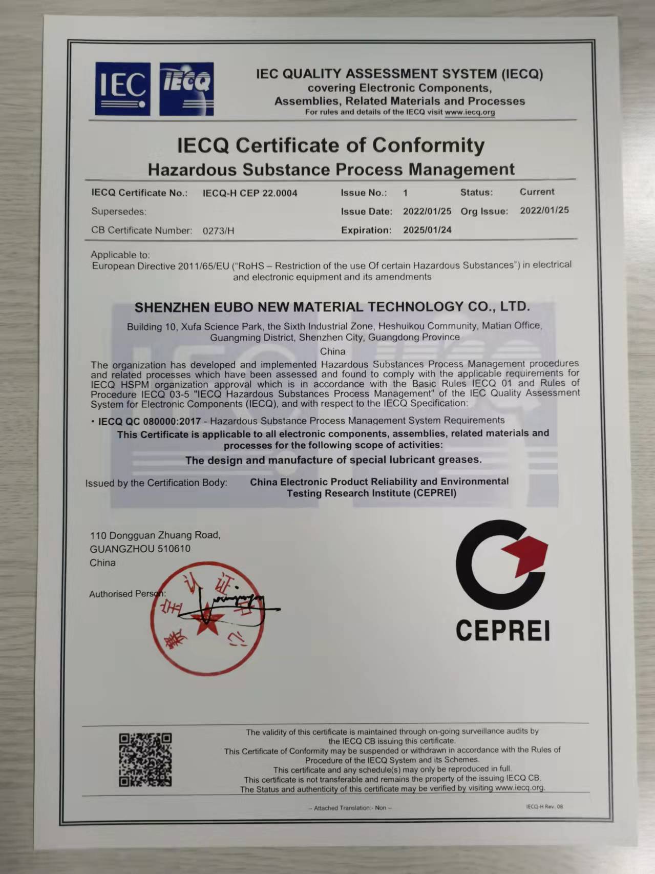 國內第一家產品通過RoHS認證,美國NSF食品級認證